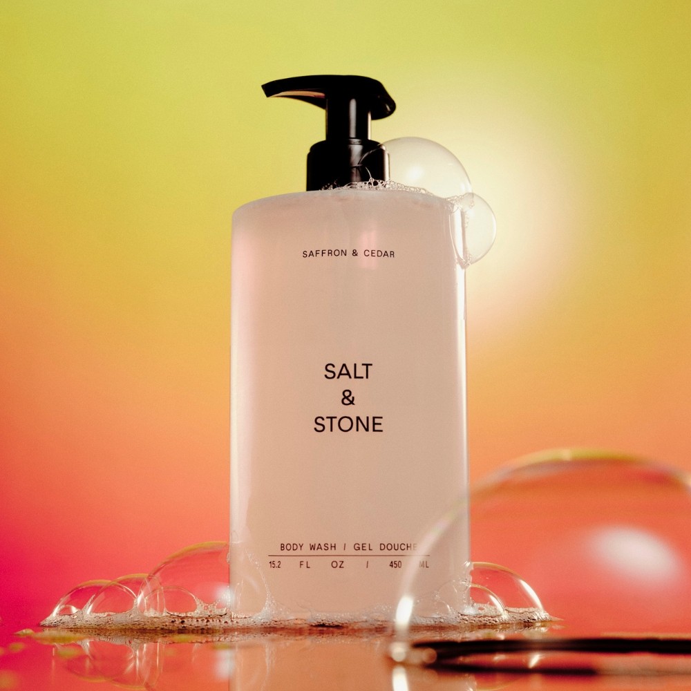 Salt & Stone body washes are aromatic gel cleansers infused with seaweed extracts and hyaluronic acid providing a rich, hydrating lather that leaves skin soft and smooth. Prepare to be engulfed by notes of Saffron, Oakmoss, Sugar Cane and Cedar.